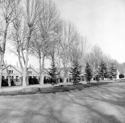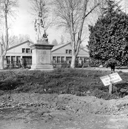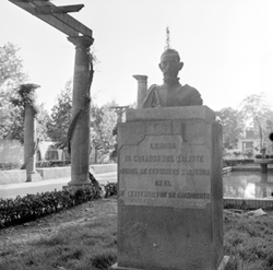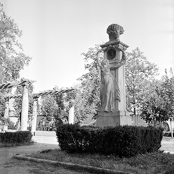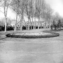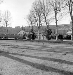 "Camps Elisis; jardins amb monument; al fons l’antiga Carretera Nacional II (antiga Avenida de los Mártires, i actual Avinguda Josep Tarradellas)"