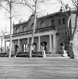 "Camps Elisis; caseta de fusta construïda originalment per la Jefatura de Montes, com a estand Feria de San Miguel (Fira de Sant Miquel); posteriorment fou estand de Cerveza San Miguel, a la mateixa fira"