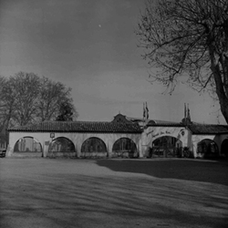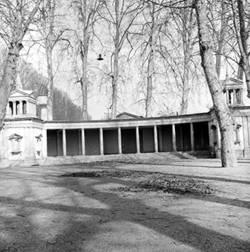 "Camps Elisis; entrada lateral des de l’antiga Avenida de los Mártires, carretera nacional II, i actual Avinguda Tarradellas"