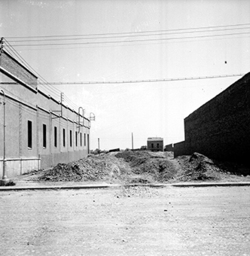 "Carrer Príncep de Viana, obres d’urbanització i construcció de clavegueram; possiblement es tracta de la canalització i soterrament del riu Noguerola, en un lloc proper a la Plaça del Treball"