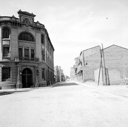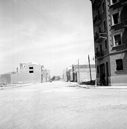"Carrer de les Corts Catalanes des del que seria actualment el Segon Passeig de Ronda; al fons situaríem el Carrer Príncep de Viana"