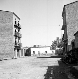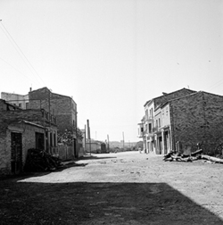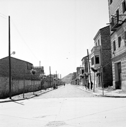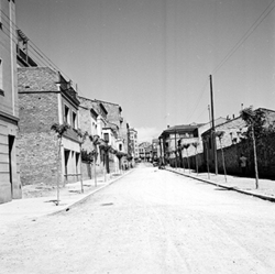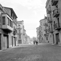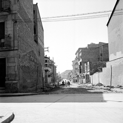 "Carrer de Vallcalent des del xamfrà amb el Carrer Ciutat de Fraga; al fons estaria l’actual Carrer Bisbe Martín Ruano"