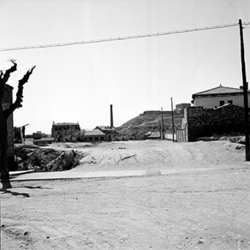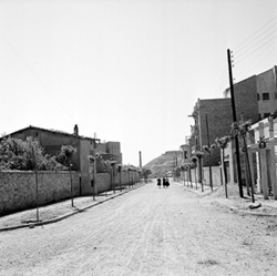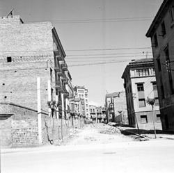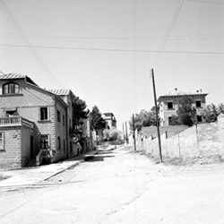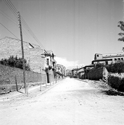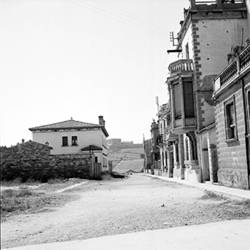 "Finalització del Carrer Maragall, vist des del Carrer Doctor Combelles, a sobre de la Serreta de l’Escorxador; al fons es veu el Turó de Gardeny"
