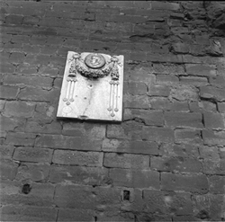 "Vista de la base del campanar sobre el Baluard de l'Assumpció de les muralles de la Seu Vella, amb la làpida, de l'any 1912, dedicada al sonet LO CAMPANAR DE LLEIDA , del poeta lleidatà Magí Morera i Galícia"