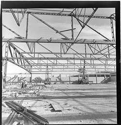 "Sèquia de Torres; obres de canalització i cobriment; sector de l'Avinguda d'Alacant, ja al xamfrà amb l'Avinguda de les Garrigues; al fons hi ha l’edifici RIBÉ - CALPE "