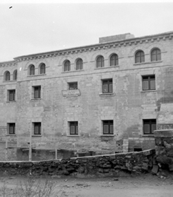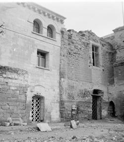 "Obres de reconstrucció de la Canònica, o Casa d'Exercicis; vista des de la pujada a la Suda"