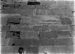 "Detall de la inscripció al peu del Baluard del Rei, a les muralles de la Seu Vella"