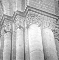 Vista dels finestrals del racó nord-est del claustre de la Seu Vella