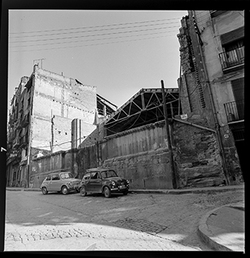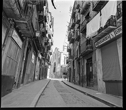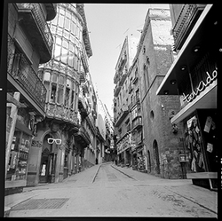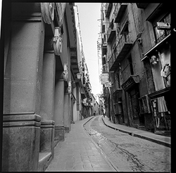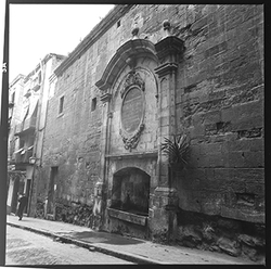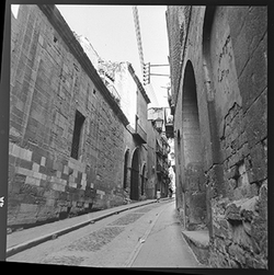 "Carrer Cavallers, a la dreta l’església del Roser i a l’esquerra, el Roser"