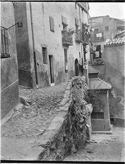 "Part alta del Canyeret; Carrer Borràs i entorns; al fons, el Campanar de la Seu Vella"