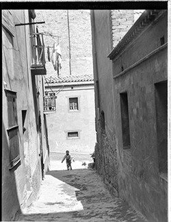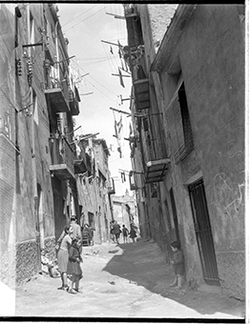 "Carrers de la Parra; en primer terme, uns nens juguen al carrer"