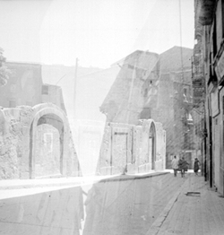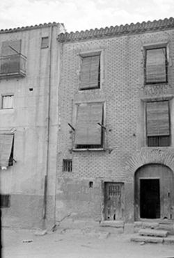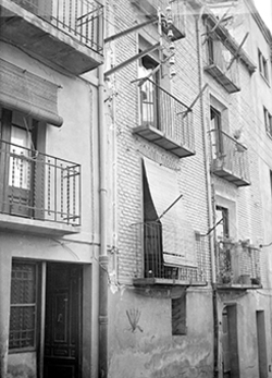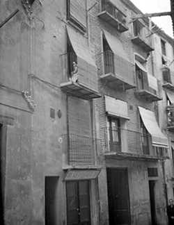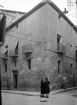 "Carrer de la Tallada, xamfrà amb el Carrer dels Boters i de la Galera; edifici del conegut Café Cuatro Esquinas"