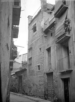 "Galeria interior d’una casa del Carrer del Palau, amb pilars de fusta"