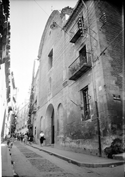 "Carrer dels Cavallers; façana de l’oratori de la Mare de Déu dels Dolors amb el carrer a la dreta"