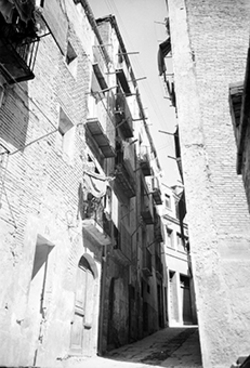 "Carrer de les Caldereries; a la dreta començaria el Carrer de les Carnisseries"