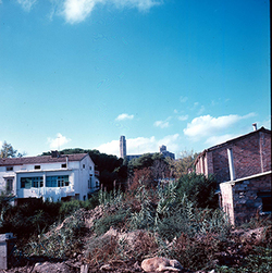 "Zona d’expansió del barri de Cappont; urbanització dels nous carrers al voltant de la nova Avinguda d'Alacant, i canalització de la Sèquia de Torres; al fons el Turó de la Seu Vella"